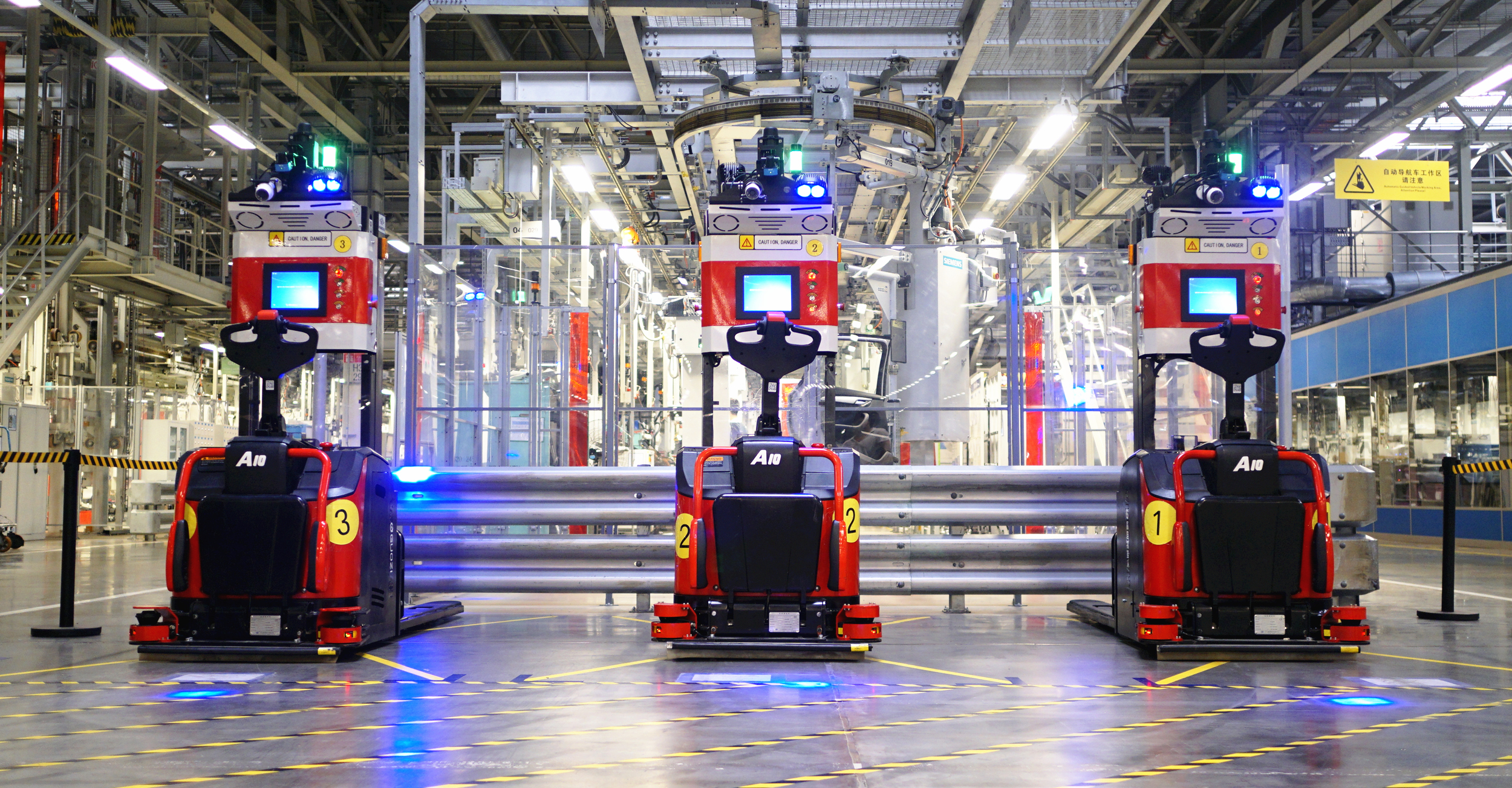 华晨宝马铁西工厂自动导引机器人项目是星空电竞-杭叉-宝马合作的首个自动导引机器人项目,是宝马全球首例混合交通情况下自动导引机器人项目,意义非凡。