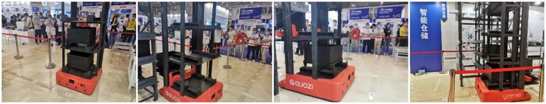 星空电竞机器人在本次CMM展上与合作伙伴共同展出了多层料箱拣货机器人Picking,呈现了从原材料仓库到产线边的自动化配送解决方案,引来不少专业观众驻足观看,更有不少意向合作伙伴进行现场洽谈。